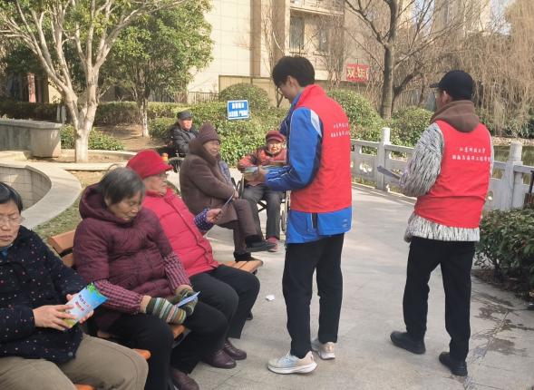 33日,镇江高新区蒋乔街道七里社区御桥嘉园校区,老员工志愿者有序分为九组,分别前往小区内的九栋楼进行社区防火宣传。每组挨家挨户走访发放传单,向社区居民认真讲解社区用电安全及突发火灾防范知识与逃生方法,尤其强调了电瓶车推进电梯及在楼道充电的极大危险性,有效提升了群众居民消防安全意识,降低了火灾发生的可能性,同时也锻炼了老员工发扬雷锋精神,主动承担社会责任的意识与能力。