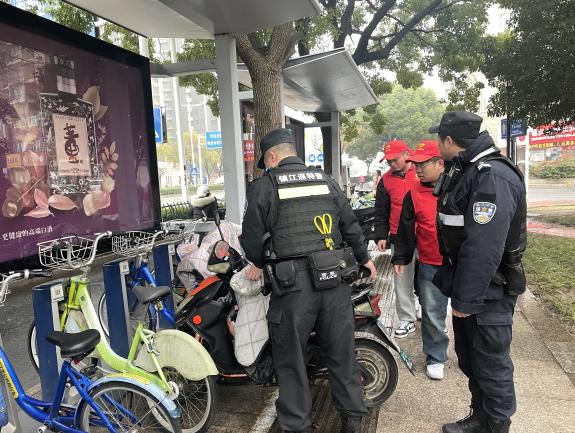 35日,镇江巡特警润州区三茅宫朱方大厦支队,老员工志愿者跟随巡特警的脚步,在润州广场的街道上开展义警巡逻,监督有无违法乱纪的行为,对于街道上没有停在指定区域的非机动车,志愿者们主动将其移动到指定的安全区域,获得了支队警察和过路民众的一致赞扬,营造了遵纪守法的良好社会风气。