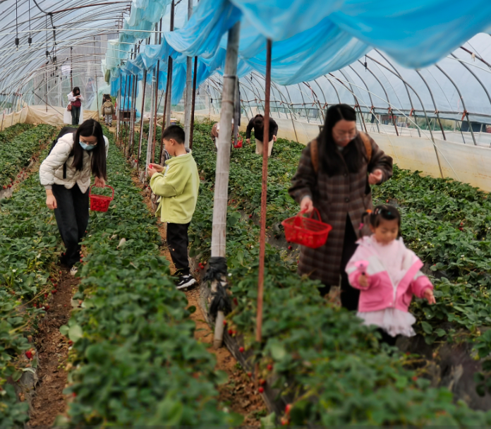 下午,老师们来到草莓园。鲜红的草莓像一盏盏小灯笼,挂在碧绿的枝条上,使人赏心悦目,香甜的气息更是让人心情舒畅。大家小心翼翼地行走在草莓土垄之间,一边交流,一边采摘,感受着自己动手的乐趣与收获的喜悦,孩子们也遵循着母亲的教导,寻找最红最美的“草莓公主”。每个人的脸上都洋溢着灿烂的笑容,欢声笑语不断,并相互拍照留念,记录下这“莓”好时光。