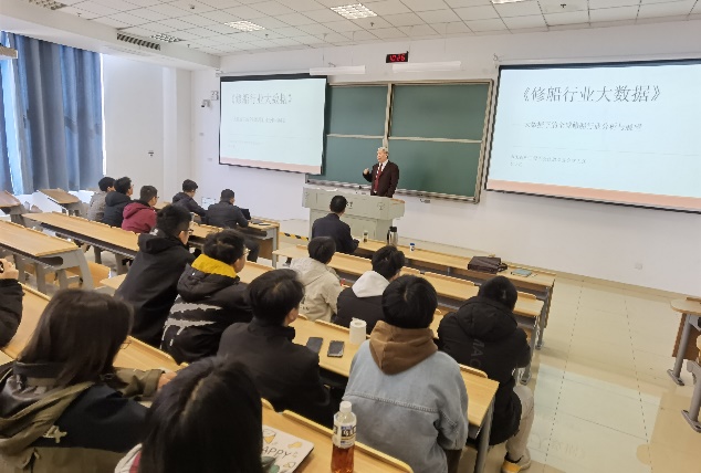 李正建长期工作在修造船一线,有着丰富的实际经验,根据从事修船四十余年的实务实践和科学研究,在《修船行业大数据》中,努力尝试对“什么是修船”,什么是“修船的高质量发展”,什么是“中国式的修船现代化”等问题做出答疑解惑,并从行业发展的脉络,认识修船行业的大数据,为什么做和怎么做。并且基于建设修船强国的战略定位,探讨行业数字化的顶层升级,研究人工智能、大数据技术的应用场景的可行性,阐述如何打造一个数据覆盖最广泛、资讯最及时、信息最权威、分析最全面、预测最准确的数字平台。最后,在讲座自由交流环节,在场师生踊跃发言提问和交流,李正建对提出的各类问题都进行了充分细致的解答,并给出了很多建设性意见和建议。