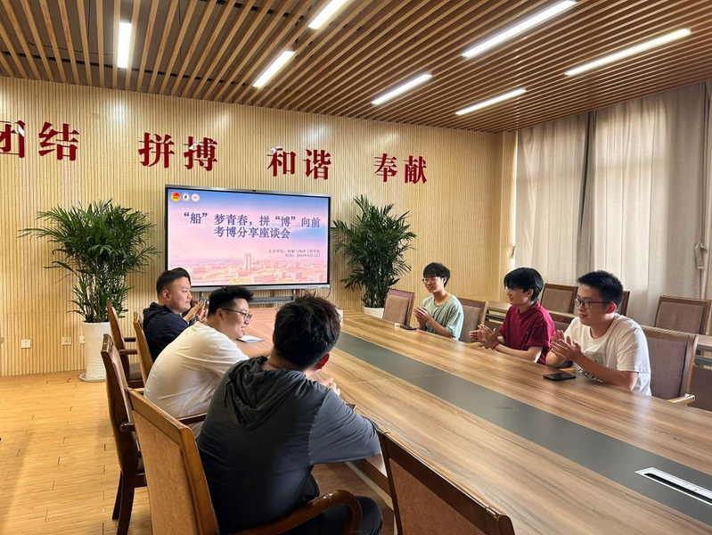 6月24日下午由船海学院开展的“船”梦青春、拼“博”向前——考博分享座谈会于船建楼403会议室顺利举行,本次经验分享会由辅导员黄妍老师主持,由王文庆、万鑫、宋阜锴同学进行考博经验的分享,解答同学们关于申博过程中的疑惑,帮助大家了解当前升学形势,尽快认识自我,以便对未来进行更好地规划。