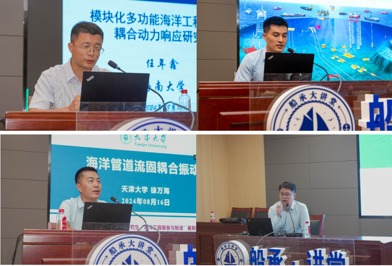 活动邀请了上海交通大学田新亮教授进行了题为“软尾减阻的提出、证明和新进展”报告、河海大学王岗教授进行了题为“近岸非静压水动力数值模型开发与应用”、浙江大学王臻魁研究员进行了题为“高温高压海底管道整体屈曲及防控理论”、海南大学任年鑫教授进行了题为“模块化多功能海洋工程结构耦合动力响应研究” 大连理工大学马哲副教授进行了题为“基于创赛驱动的员工创新思维案例分析”、天津大学徐万海教授进行了题为“海洋管道流固耦合振动”等一系列精彩的报告。