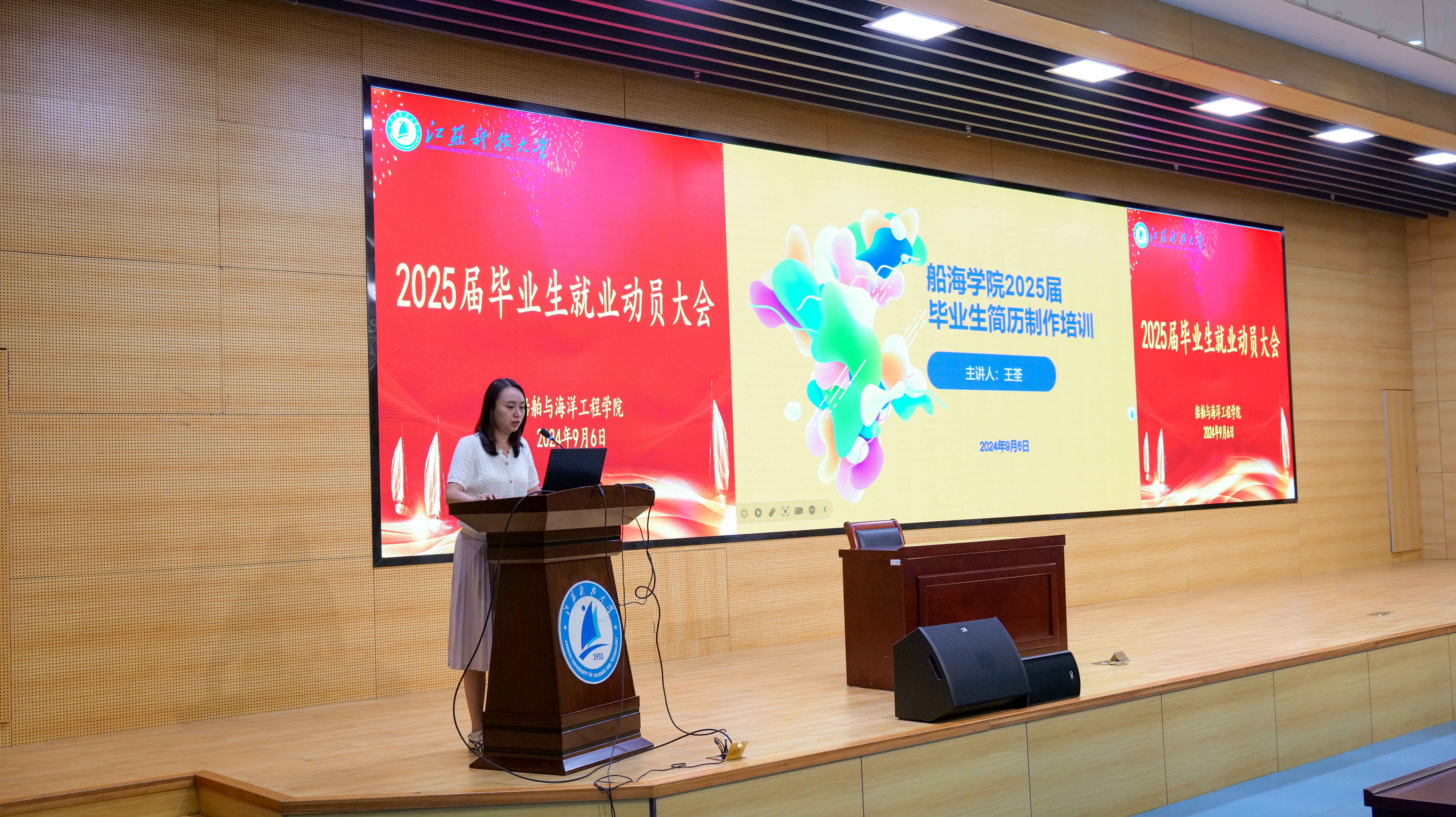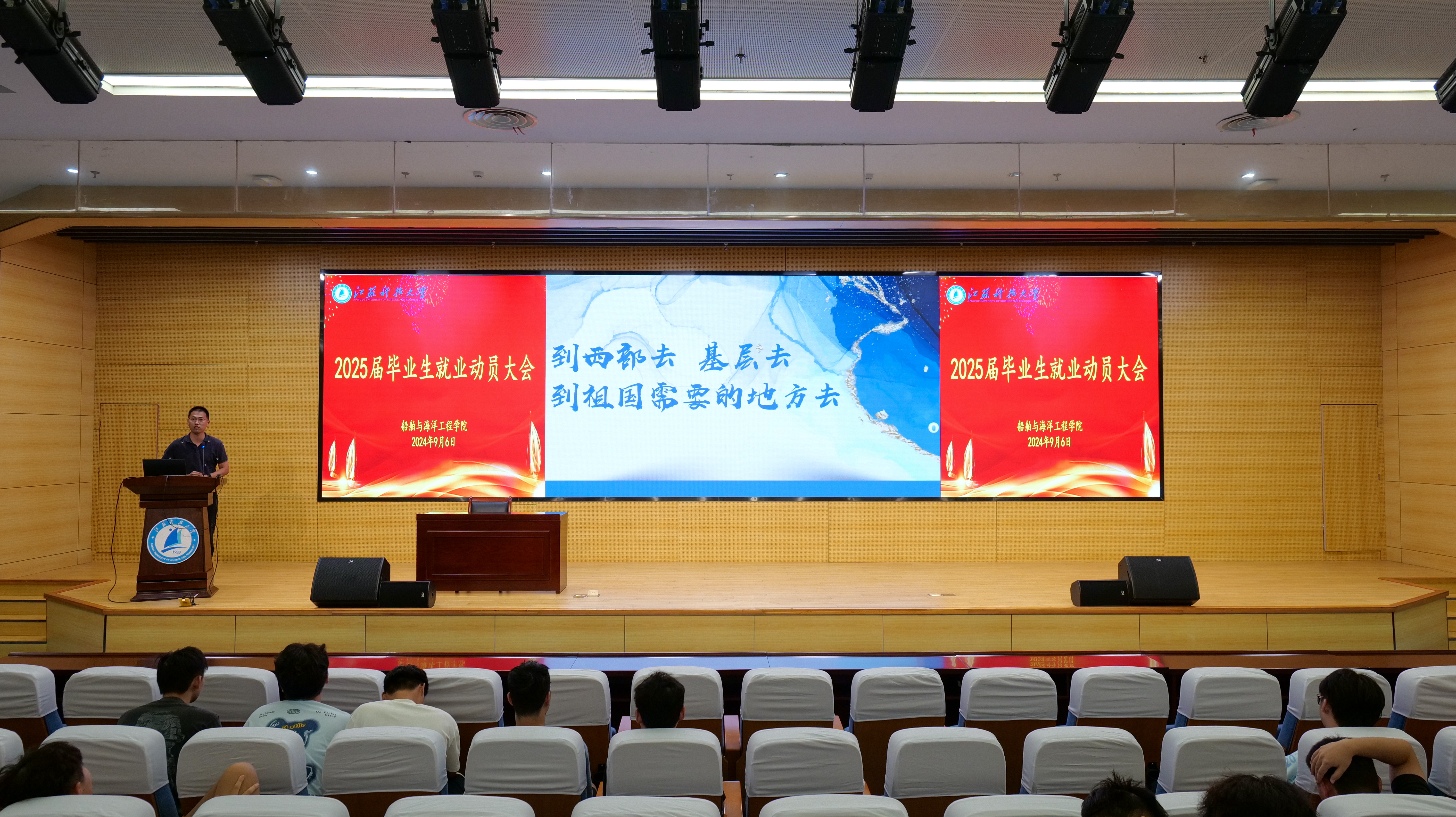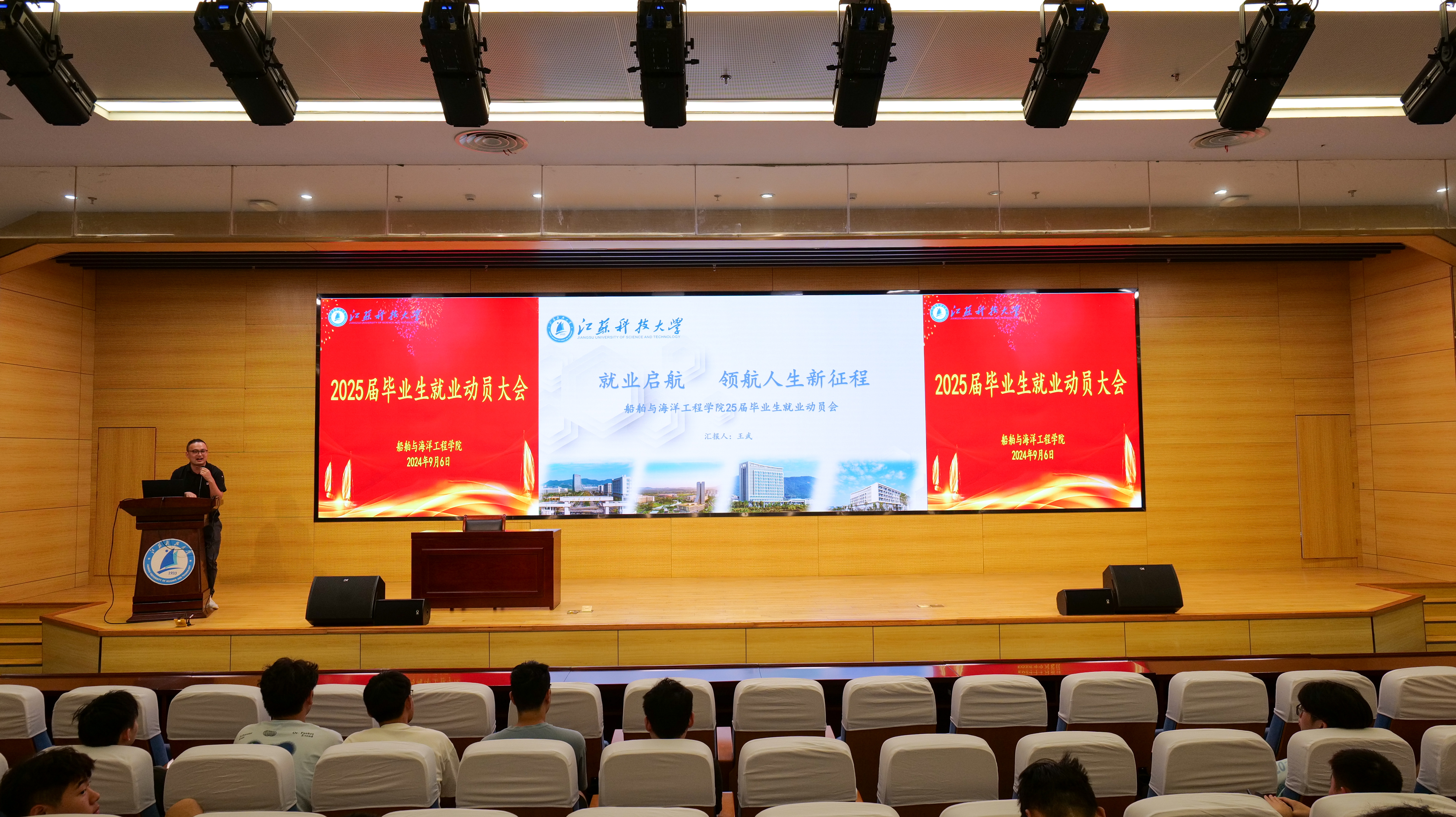 为贯彻落实党中央、国务院关于高校毕业生就业工作决策部署,帮助毕业生深刻认识当前就业形势与就业压力,熟悉就业政策,充分调动就业积极性,树立就业信心,船海公司于9月6日在图书馆B105报告厅举行2025届毕业生就业动员大会。公司党委副书记巫蓉、毕业班辅导员及全体2025届毕业生参加会议。