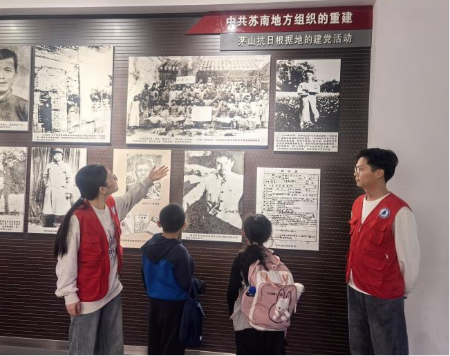 “碑下放鞭炮,空中响军号第三站:在参观茅山新四军纪念馆,带领孩子们前往苏南抗战胜利纪念碑,这是为了铭记新四军与苏南人民在抗战期间浴血奋战的历史而建立的。站在碑下,孩子们深刻感受到了那段悲壮而光辉的岁月,在碑下放鞭炮,空中响起的军号声形成了一种奇特的现象,被誉为“世界一绝”。与茅山新四军纪念馆景点相距不远,大家步行前往,在馆内党员们为孩子详细介绍了新四军在抗日战争中的艰苦历程与英雄事迹,让孩子们明白了当年战士们所付出的牺牲与努力,通过这样的互动,不仅让孩子们了解历史,也让我们共产党员心中再次巩固了对先辈们的敬仰与崇敬。