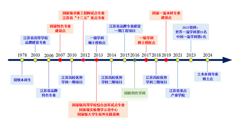 本专业1978年开始招收本科生,先后入选江苏省高等公司品牌建设专业(2003)、江苏省品牌特色专业(2006)、国家特色专业建设点(2007),国家级卓越工程师试点专业(2012)、江苏高校品牌专业建设一期工程项目(2015)、国家级高等公司综合改革试点专业(2013)、国家级一流本科专业建设点(2019),依托本专业建设的“海洋工程装备智能制造产业公司”获批2021年江苏省重点产业公司,并获推参评第二批国家级产业公司。本专业在2024软科中国大学专业排名中位列第11位,评为B+级,是公司工程学ESI全球学科排名前1%主要贡献学科,拥有本硕博完备的人才培养体系,船舶与海洋工程学科一直为江苏省优势学科,并于2022年考核获优秀等级。2024年获批江苏高校品牌专业建设工程三期项目(特色专业),同年获批土木水利博士点。