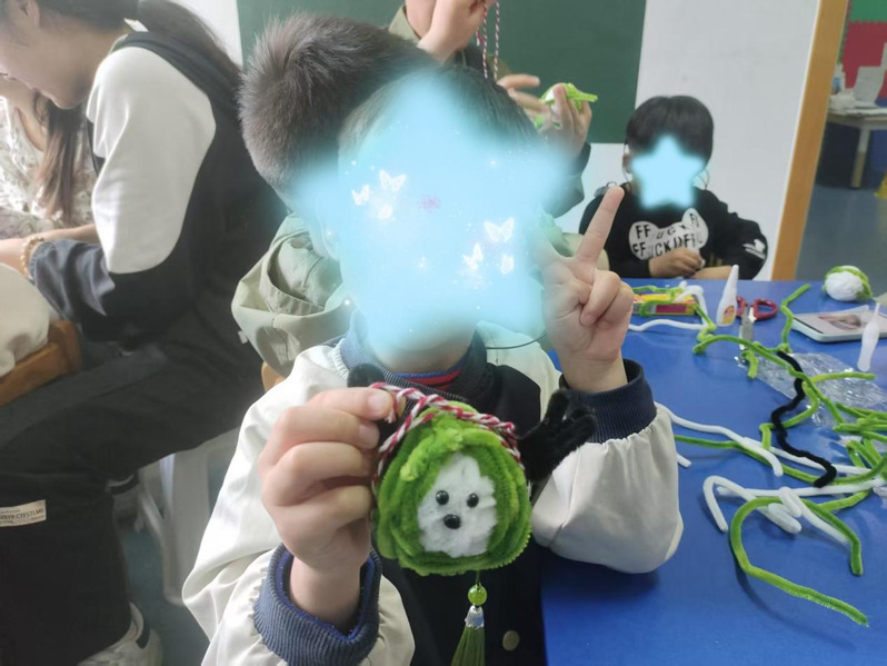 活动现场,色彩缤纷的扭扭棒材料包整齐摆放。在​太阳成集团tyc234cc的志愿者一对一协助下,孩子们将翠绿、明黄的扭扭棒缠绕成玲珑的粽子造型。看,我的小粽子有彩虹尾巴!小朋友们举着缀满彩珠的作品,主动向志愿者展示。活动负责人范辰鸿介绍:扭扭棒材质柔软、可塑性强,既能锻炼精细动作,又能通过色彩搭配激发表达欲,现场完成的件作品将布置成端午艺术角。