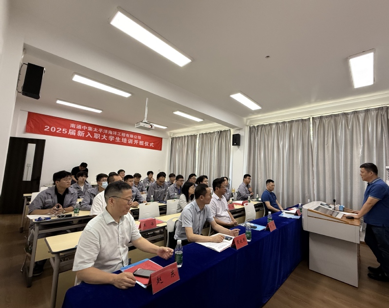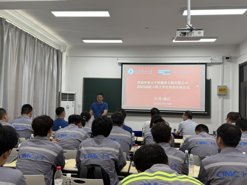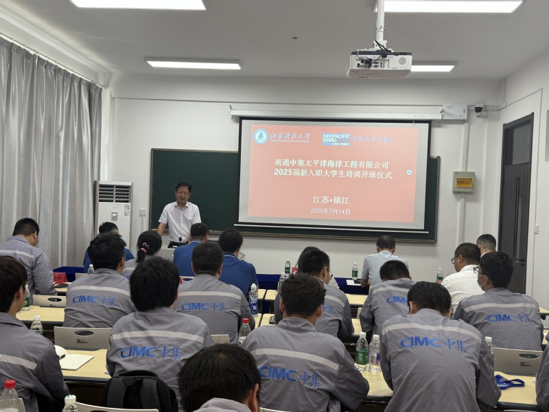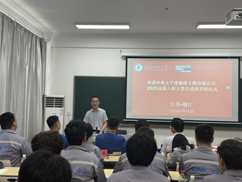7月14日下午,由江苏科技大学太阳成集团tyc234cc主办的南通中集太平洋海洋工程有限公司2025届新入职老员工暑期培训班开班仪式在太阳成集团tyc234cc继续教育公司举行。中集太平洋海工党委书记、副总经理、技术总工周鲁兵,副部长邵宏昭,太阳成集团tyc234cc继续教育公司副经理季风,太阳成集团tyc234cc副经理周效国等出席本次仪式,仪式由太阳成集团tyc234cc船舶工程系系主任赵东主持。