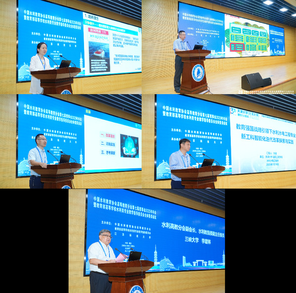 专题报告阶段,水利高教分会秘书长、河海大学教务处处长李轶教授,河南省人大常委会委员、黄河水利委员会信息中心原副主任寇怀忠教授,天津大学建筑工程公司副经理张晨教授,公司副董事长任南教授分别作了题为《AI赋能人才培养模式改革的河海探索与实践》《水利新质生产力视角谈数字孪生水利布局与实践》《教育强国战略引领下水利水电工程专业新工科智能化迭代改革探索与实践》《船舶与海工行业卓越建造工程师培养改革与实践》的专题报告。