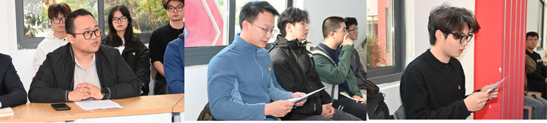 活动伊始,进入专题领学环节。海洋工程系党支部周礼军同志、农珍珍同志分别领学了《习近平总书记关于党的建设的重要思想概论》、中国共产党党员教育管理相关内容,强调必须以党的政治建设为统领,用习近平新时代中国特色社会主义思想凝心铸魂,才能锻造忠诚干净担当的先锋队伍。殷齐麟同志结合船舶界“定海神针”——杨槱院士相关事迹,详细阐述了大教育家精神的深刻内涵,引导师生党员将大教育家精神入脑入心。随后,本科生二支部书记葛斐同志分享了高校教师师德失范的典型案例,提醒教师党员时刻严守师德底线,规范从教行为,也希望员工党员能够以案为鉴,树立底线意识。